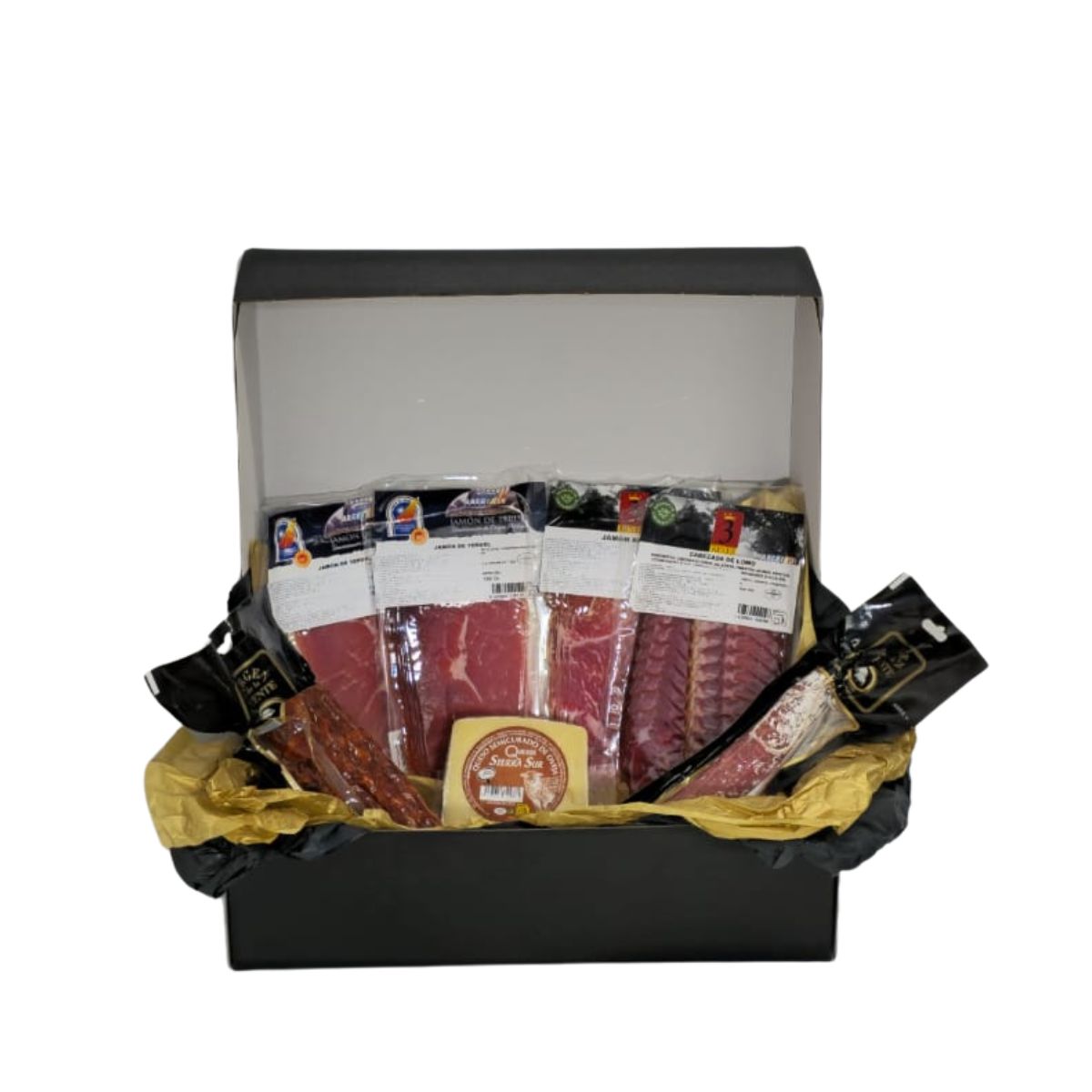 I denna utvalda kombination ingår både 18 månaders och 23 månaders lagrad serranoskinka, tillsammans med klassiska spanska specialiteter som chorizo, fuet, cabezada de lomo och smakrik fårost.